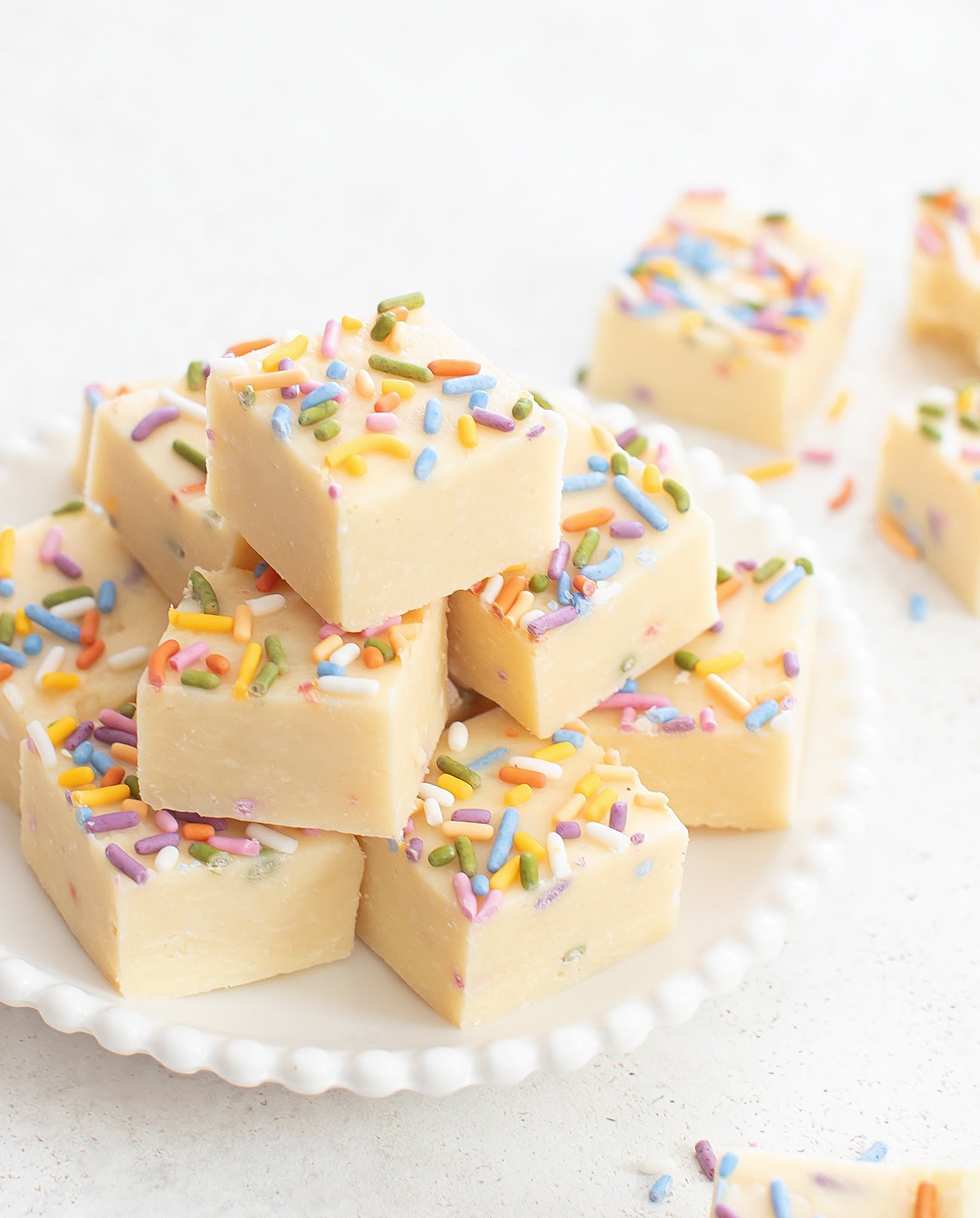 This easy sugar cookie fudge is made with just 3 ingredients and tastes just like you’re eating a sugar cookie—but in creamy fudge form. It comes together quickly without the need for a stove, and can be topped with sprinkles for a festive touch. Perfect for holiday trays, gifting, or when you’re craving something sweet!