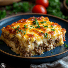 A cheesy and satisfying keto ground beef casserole that makes for a perfect meal option.