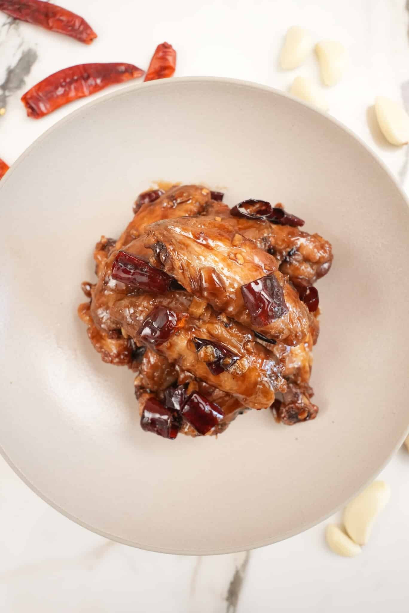 In a large wide pan, heat 2 tbsp of neutral oil over medium heat. Add your garlic and chili and fry 30-45 seconds until fragrant, then add soy sauce, sugar, brown sugar, garlic and vinegar. Stir until the sauce bubbles and the sugar is dissolved, about 2-3 minutes. Then add the cornstarch slurry (water mixed with cornstarch) and mix until thickened.