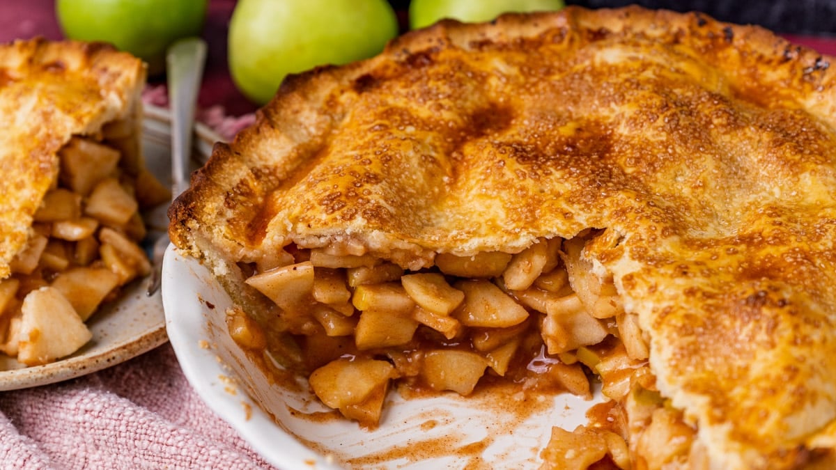 Apple pie with nutmeg and cinnamon. The two keys to making this the best homemade apple pie around.