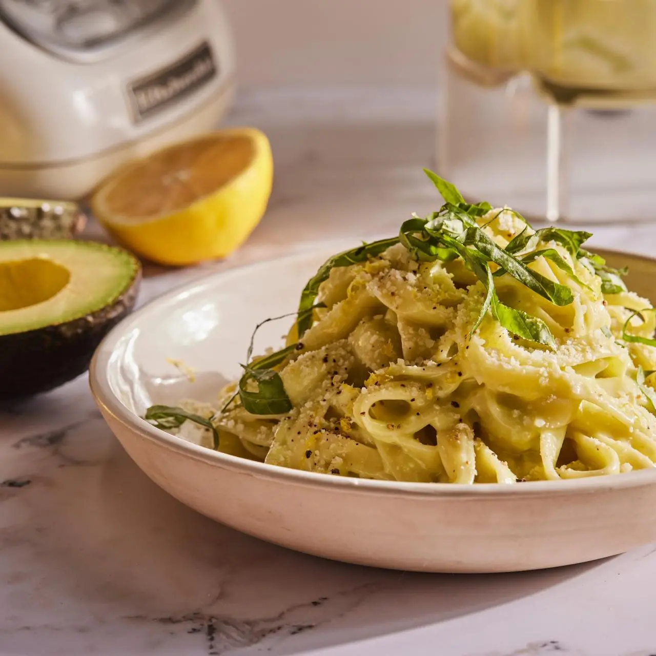 This dish tastes just like the classic alfredo dish you love, but with the addition of creamy avocado instead of added butter or oil. Just blend ripe avocados with heavy cream, garlic, and plenty of grated pecorino cheese then toss with al dente fettuccine. The result is a rich, bright, uniquely green alfredo ready in just about 25 minutes and sure to delight pasta lovers and avocado lovers alike.