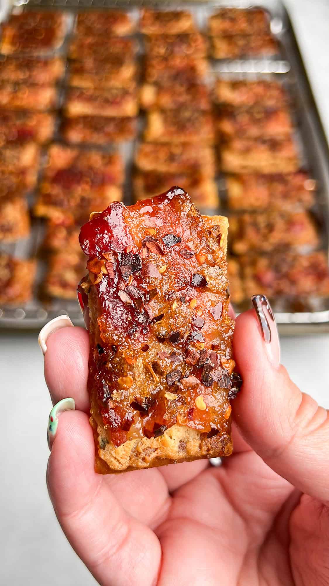 These Boursin Candied Bacon Crackers bring a creamy herby flavor to the addictive sweet and salty combination, making for a crunchy, protein-packed snack making these the perfect poppable appetizer for any occasion.