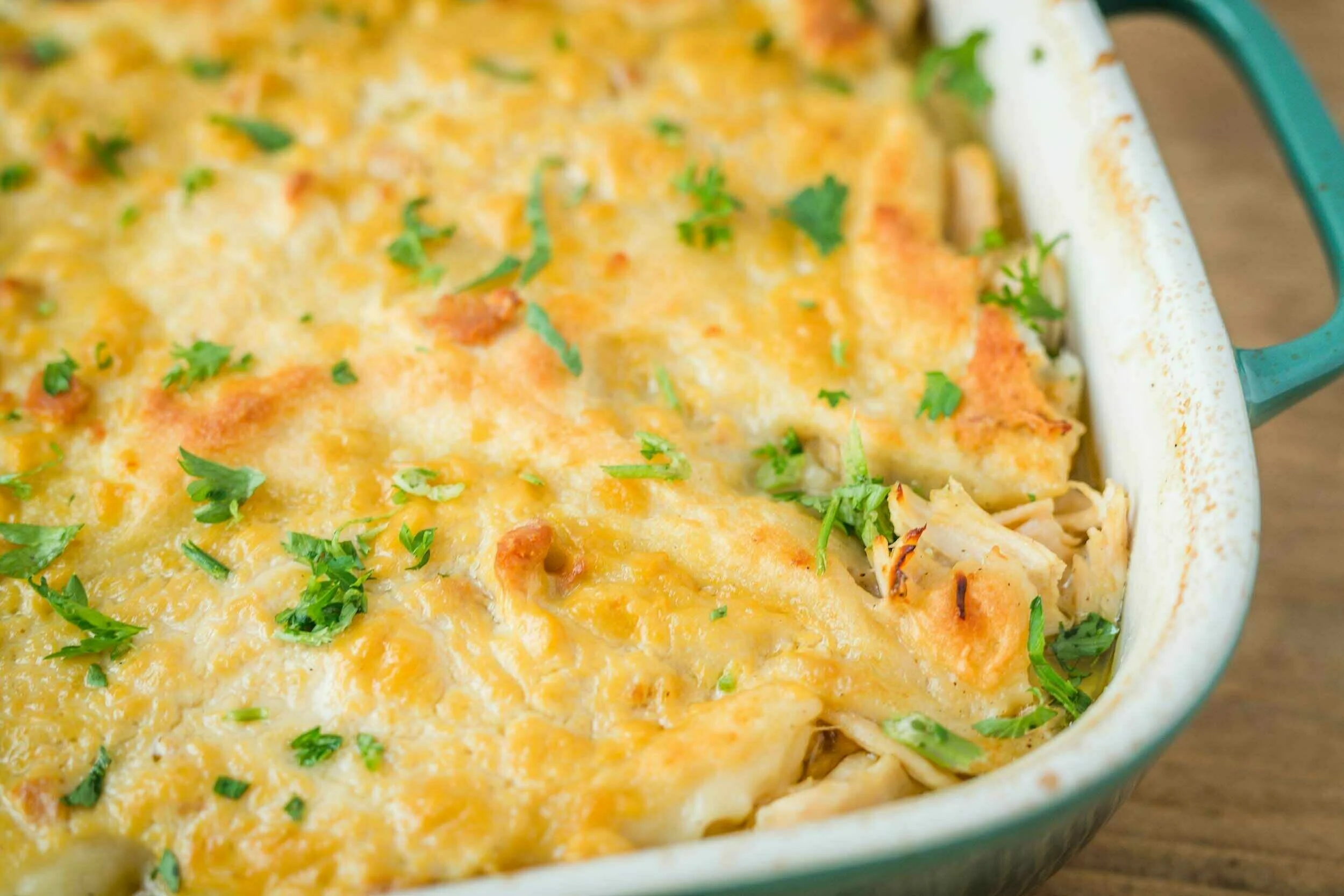 This casserole offers a twist on your usual creamy, savory chicken dish! Chicken Dumpling Casserole essentially turns the entire meal into one giant chicken dumpling, with a layer of tender dumpling-like dough enveloping shredded, juicy chicken. The top of Chicken Dumpling Casserole is golden-brown and just bursting with rich chicken flavor, almost gravy-like in its depth. It may be a different kind of casserole than you're used to, but it's sure to become a favorite!