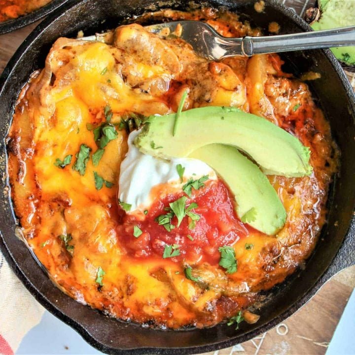 Add chicken back to pan and stir in taco seasoning, sour cream, and cream cheese. Mix well.