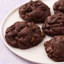 Add flour, cocoa, baking soda and salt and beat on a low speed until soft cookie dough forms.