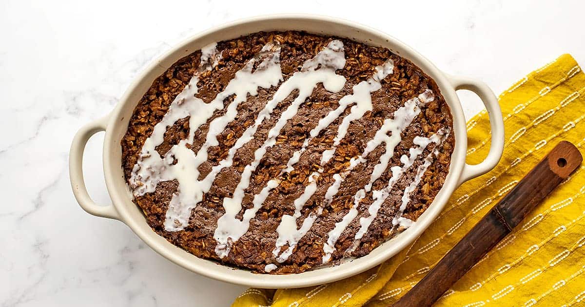 Allow the cinnamon bun baked oatmeal to cool at least 20 minutes before frosting.