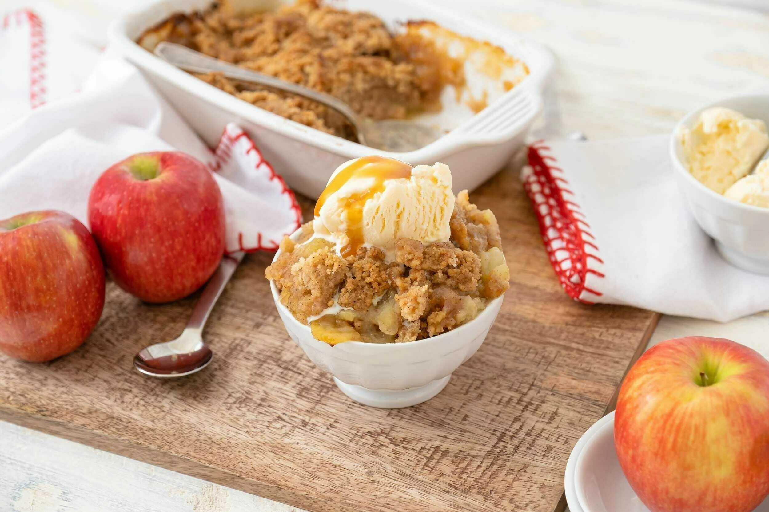 A bowl piled high with Classic Brown Betty is like a mountain of happy feelings. Classic Brown Betty takes all the flavors of a classic apple pie and removes both the bottom crust and the costly time commitment. Cinnamon-spiced, crunchy, and buttery crust blankets ooey, gooey, baked apples with a touch of citrus brightness. When topped with your favorite vanilla ice cream and rich caramel sauce, you'll find this dessert to be the peak of your evening!