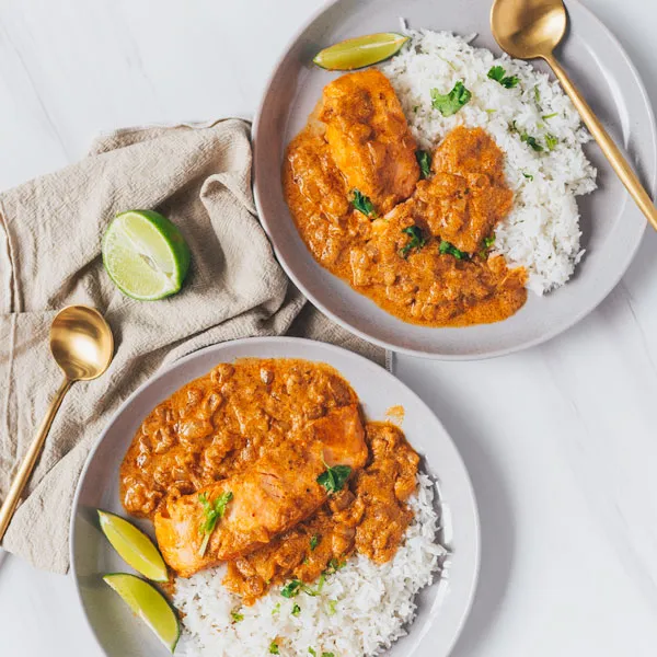 Reduce the heat to low and add coconut milk. Let mixture come to a simmer, then add salmon fillets back to skillet.