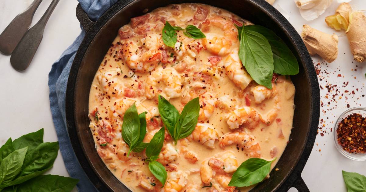 Add the shrimp and cook for 4-7 minutes until pink and cooked through. Top with more basil and season as needed.