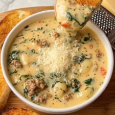 A rich and comforting Creamy Italian Sausage and Gnocchi Soup featuring browned Italian sausage, tender vegetables, sun-dried tomatoes, and pillowy potato gnocchi simmered in a luscious blend of chicken broth, heavy cream, and Parmesan cheese. Perfect for a satisfying meal that warms you up from the inside out.