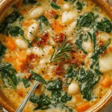 Warm up with this creamy white bean & bacon spinach soup — rich, hearty, and bursting with cozy flavor.