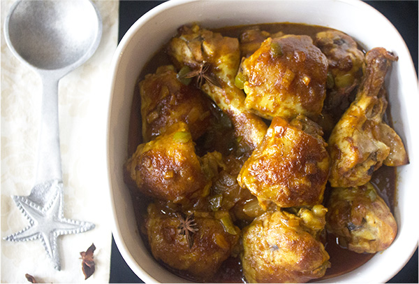 Chicken pieces smothered in a sweet curry sauce with star anise and baked to perfection.