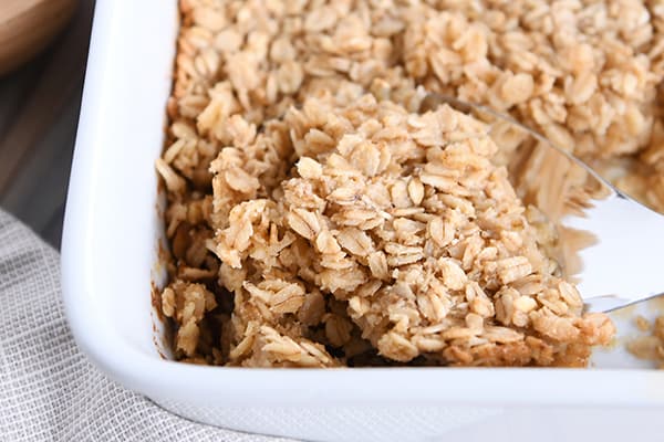 Bake uncovered for 25-30 minutes until the edges are lightly golden and the oatmeal is set. Serve warm with additional toppings.