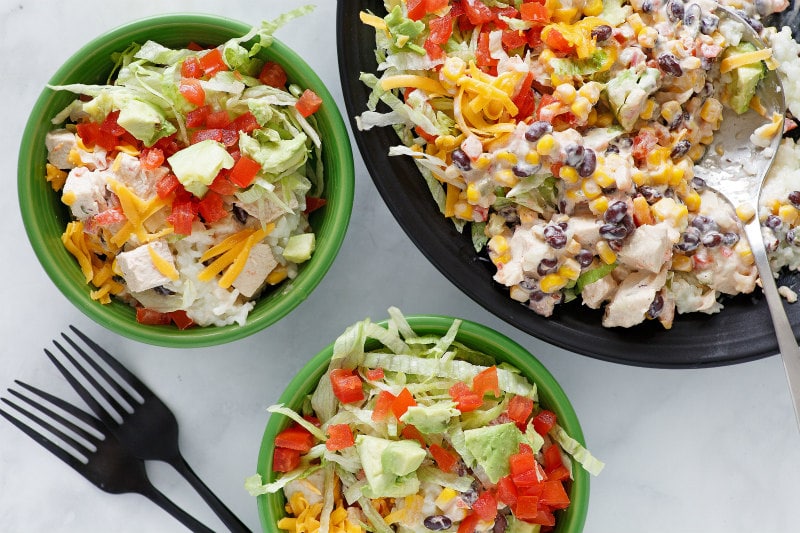 For serving: You can serve the chicken and sauce over rice with a sprinkle of lettuce, tomato and cheddar cheese on top. Or you can serve these as tacos with cheese and a couple of taco fixings such as lettuce and tomato.