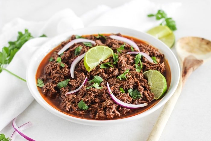Delicious Mexican barbacoa-style beef on a weeknight is possible with this simple recipe for Instant Pot barbacoa beef! Use it for tacos, bowls, burritos, salads, and more. (gluten-free, nut-free, dairy-free)