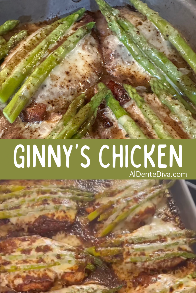 Ginny chicken is made with chicken cutlets, cheese, asparagus and gravy baked together for a super easy and impressive dinner.