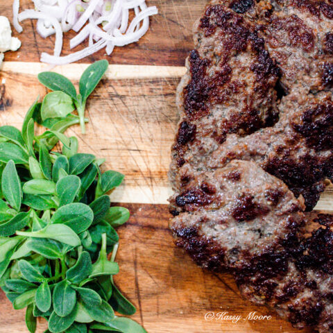 This ground venison gyro meat is flavorful and so good wrapped in homemade flatbread with all the toppings. This recipe is very good as leftovers. Simply slice the patties in thin strips and heat in a skillet. No gamey flavor at all. Substitute ground beef, pork, lamb or turkey!