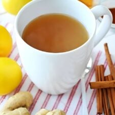This Homemade Fresh Ginger Tea is a delicious tea made with fresh ginger, lemon juice, honey, cinnamon and cayenne pepper. Comforting and so tasty.