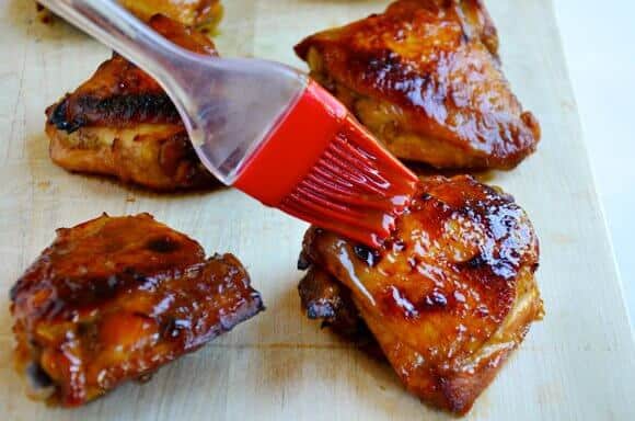 Whisk together the cornstarch with 2 tablespoons water. Bring the marinade to a boil then whisk in the cornstarch mixture and continue boiling the marinade, whisking intermittently, until it thickens to the consistency of syrup, about 5 minutes. (The glaze must come to a boil to get rid of any potential bacteria from the raw chicken.) Remove the glaze from the stove and set it aside.