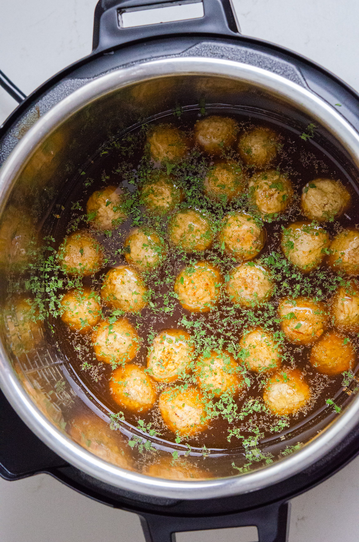 In the insert of your Instant Pot, combine meatballs, beef broth, Worcestershire sauce, garlic powder, parsley, salt and pepper. Stir to combine.