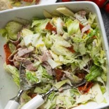 This Italian Grinder Salad Recipe is the perfect side dish! Fresh vegetables, chopped meats and cheese coated in a creamy Italian sauce.