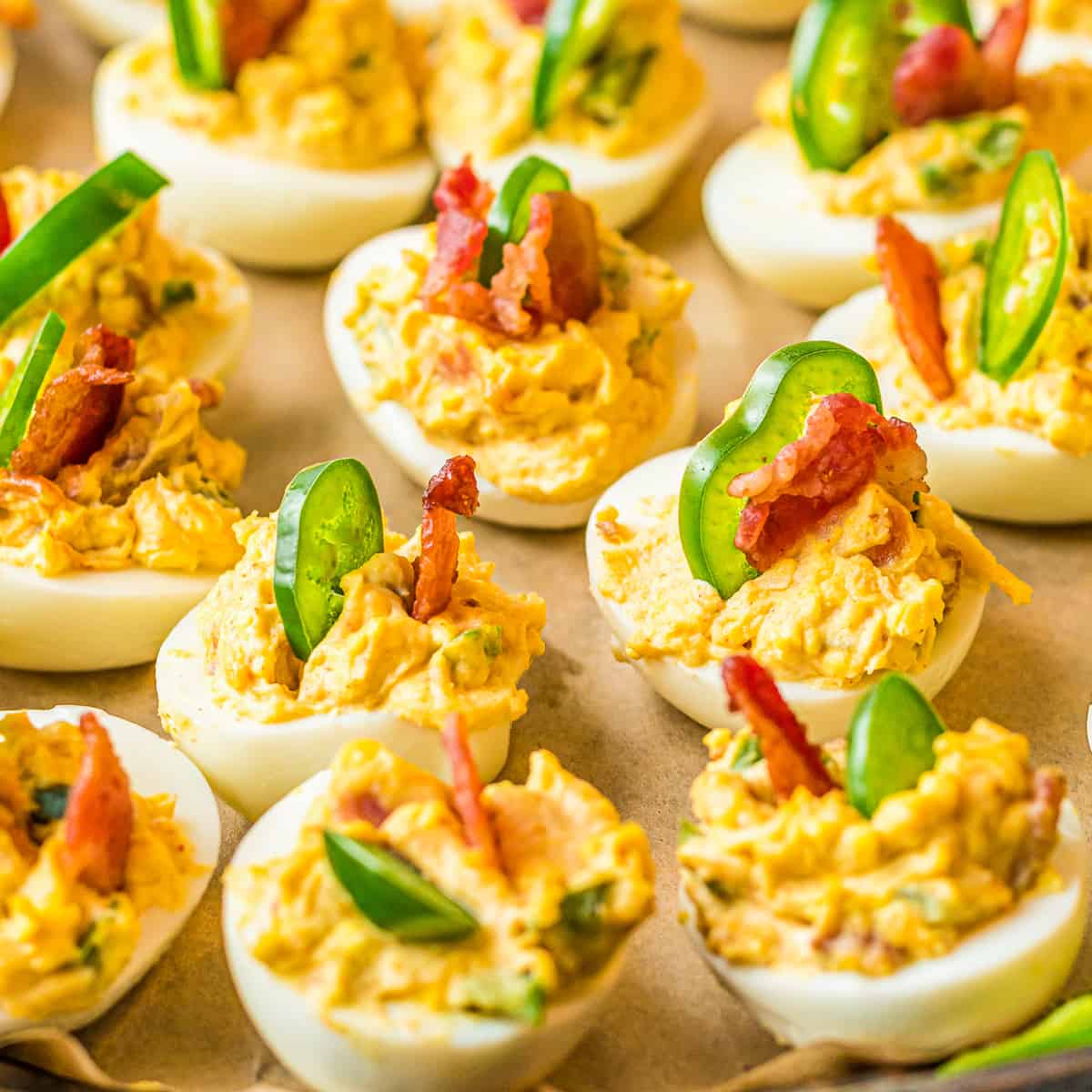 These jalapeno popper deviled eggs made with bacon, jalapeno peppers, and plenty of cheese are the perfect spicy appetizer!Step-by-step photos can be seen below the recipe card.