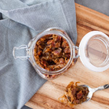 Add the sherry and brown sugar erythritol. Mix in and cook for an additional 5 to 10 minutes, until the sherry has evaporated and the erythritol has had time to caramelize. Store the jam in the refrigerator for up to 1 week.
