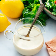 This easy lemon tahini dressing is creamy and bright! It's endlessly versatile for using on salads, bowl meals, sandwiches, and more.