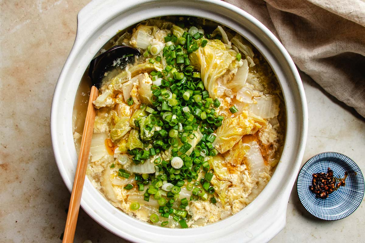Warm up with a bowl of Napa Cabbage Egg Drop Soup - an easy and flavorful recipe featuring tender cabbage and a savory broth.