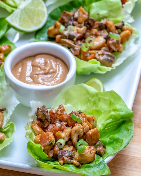 PB Chicken Lettuce Wraps for a Light Clean Eating Meal Idea!