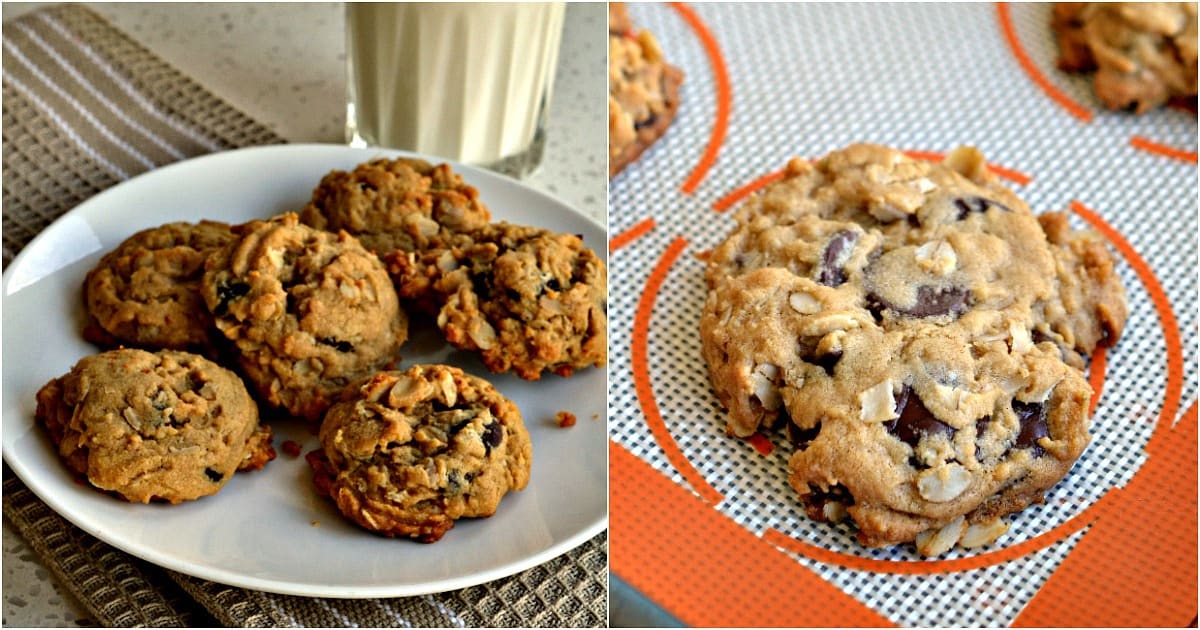 A delectable combination of creamy peanut butter, old-fashioned rolled oats, and semi-sweet chocolate chips in a cookie with a slightly crispy edge and a soft melt-in-your-mouth center.