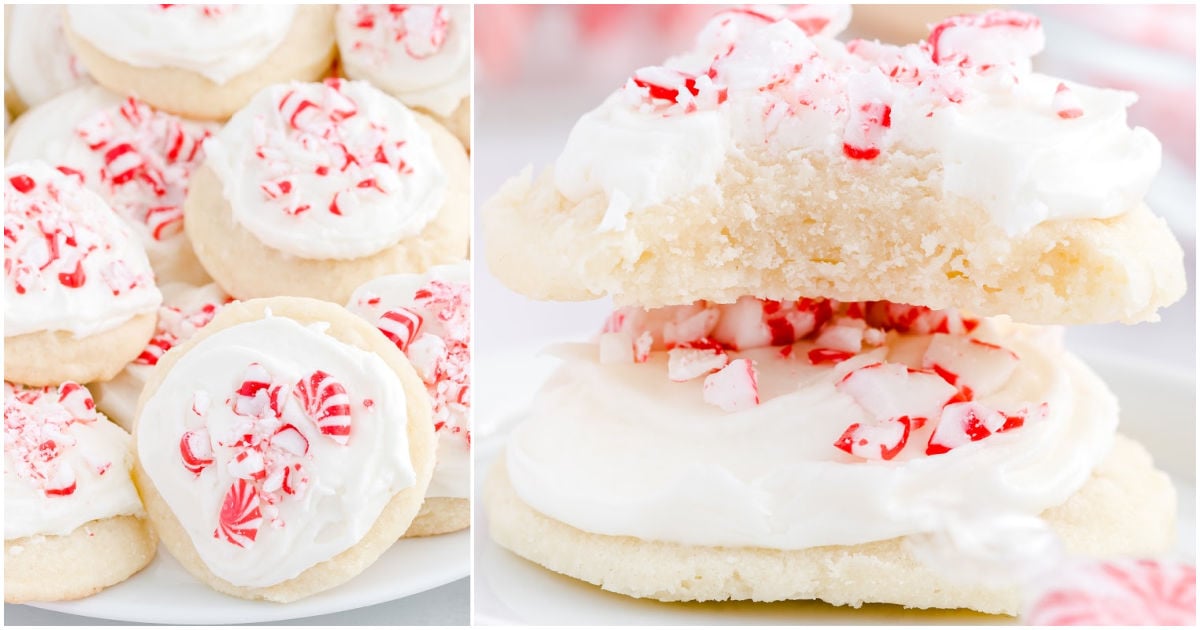 These peppermint meltaways cookies have a simple frosting and crunch candy pieces for sweetness.