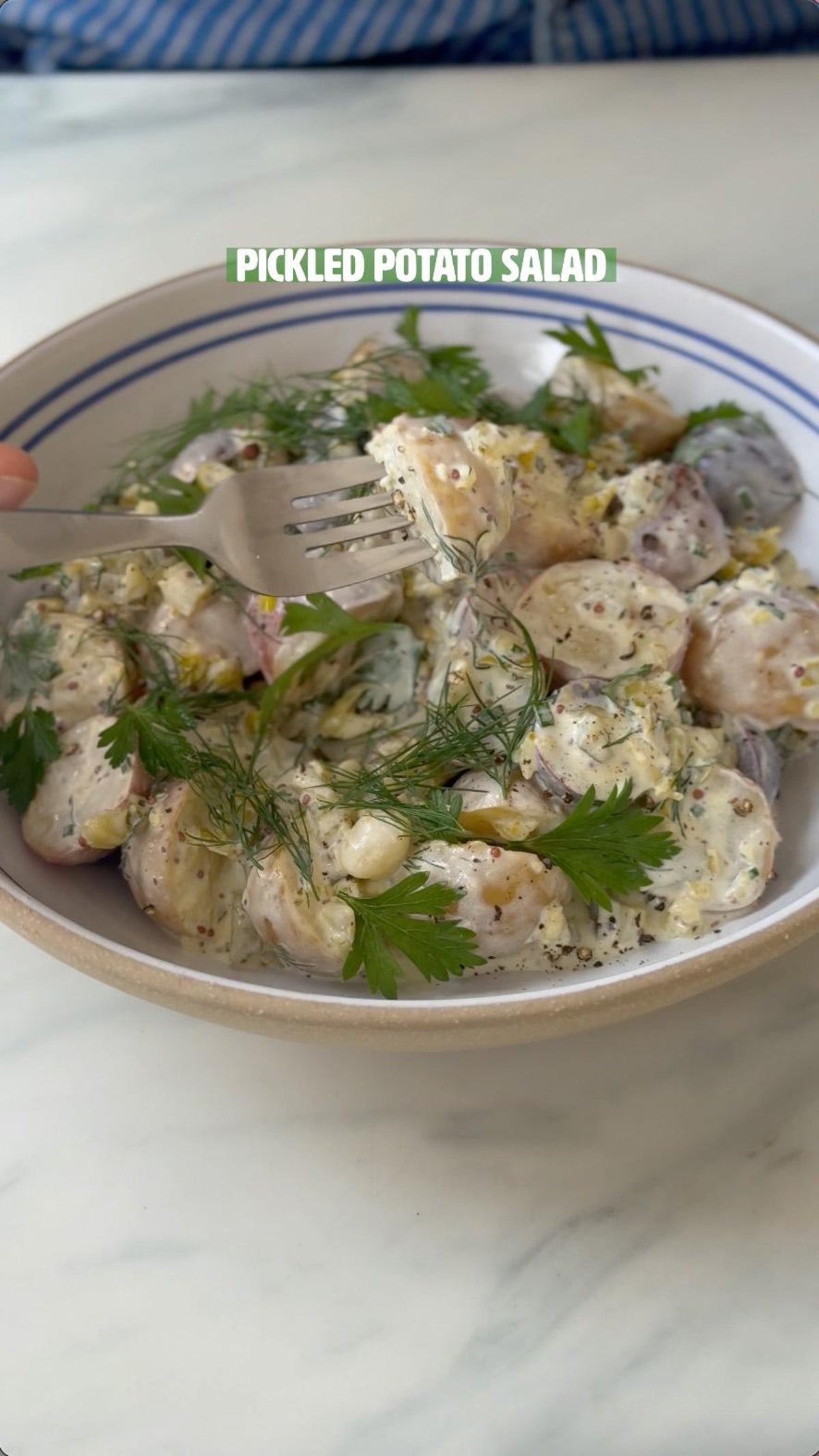 If you don’t have a go-to potato salad, congrats — you just found it. This one’s got the works: a tangy dressing, tons of fresh herbs, and crunchy pickles for that extra snap. It’s bold, balanced, and guaranteed to steal the show at your next party.