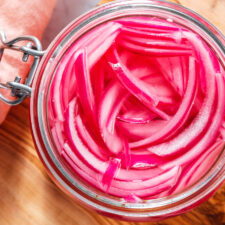 Want to add big flavor to salads, tacos, and more? This quick pickled red onions recipe is so easy and takes only 5 minutes of hands-on time!