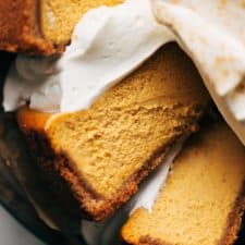 This rich pumpkin cheesecake is super creamy and baked with an entire can of pumpkin puree, warm spices, and a brown butter graham cracker crust.