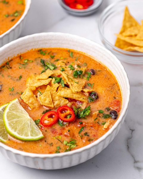 Serve the soup while hot with toppings of choice.