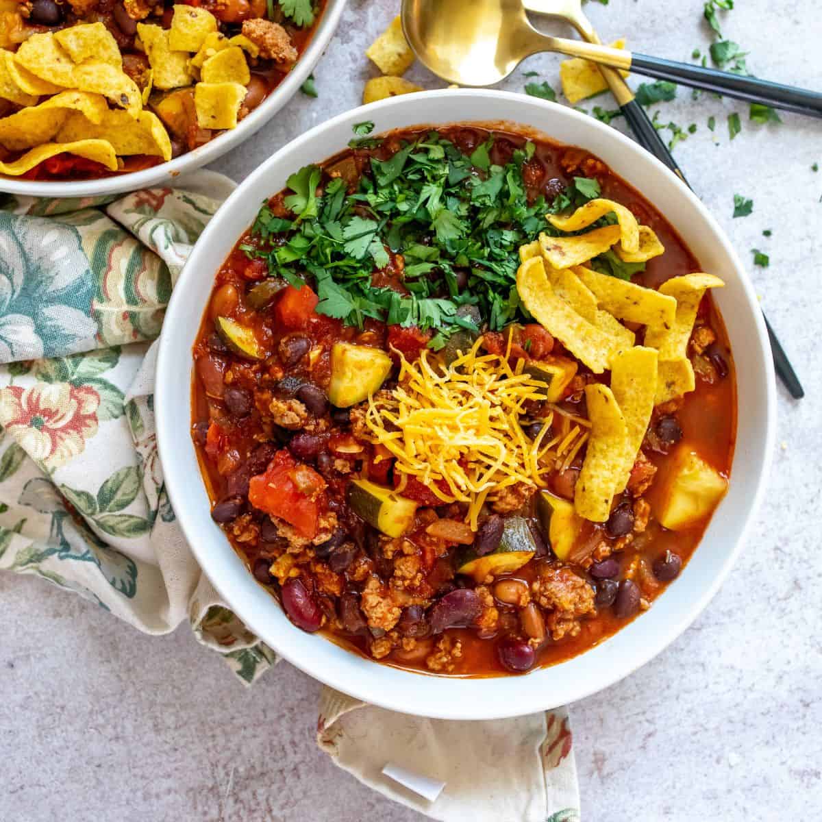 Healthy, delicious Turkey Chili In The Crockpot is easy to make. Slow cooked to perfection, filling and hearty.