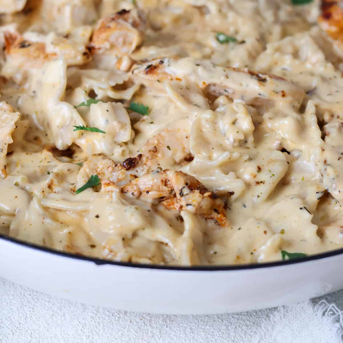 Chicken Garlic Parmesan Pasta makes the perfect weeknight meal or Sunday meal prep. With minimal pantry staples, this Parmesan pasta dish comes together in under 30 minutes!