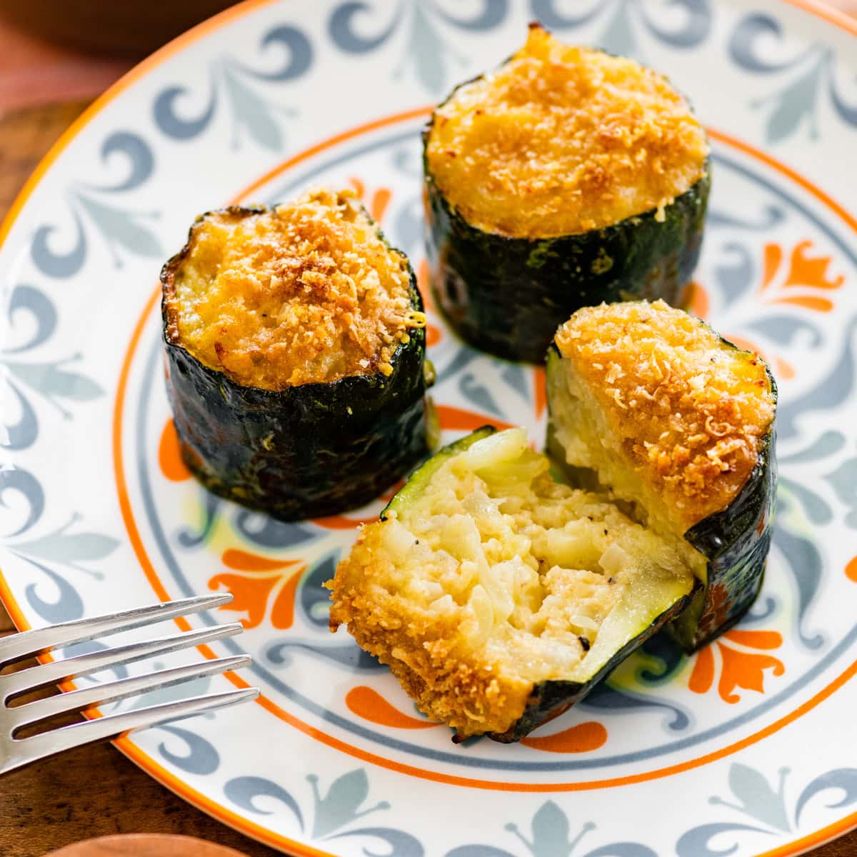 Vegetarian stuffed zucchini (zucchine ripiene) are one of the most classic Italian ways to eat zucchini. These little bites are mild, tender, flavorful, and packed with delicious zucchini, onion, and olive oil flavor.