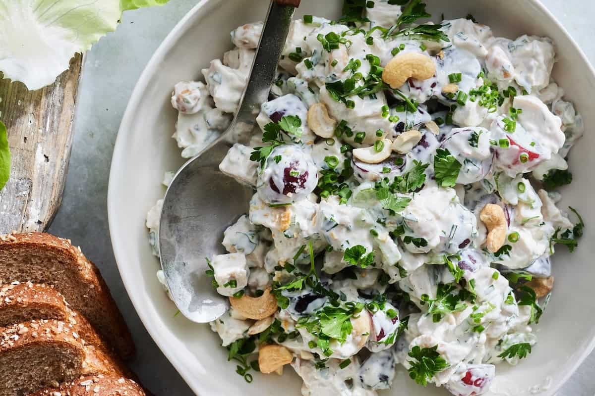 Add the chicken, grapes, cashews, celery, parsley, chives, sunflower seeds, and shallot. Gently fold everything together until well combined.