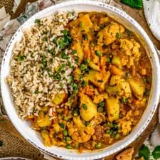We are lickin' the bowl of this ultra-flavorful dish! Easy to make using the Instant Pot or Stovetop, this comforting Cauliflower Potato Curry is packed full of aromatic spices and powerhouse veggies. The whole family will be running to the table for this hearty filling dish! It’s perfect for a quick weeknight dinner in the Instant Pot. Stovetop instructions make this recipe versatile. Soul-warming and full of feel good ingredients, grab a bowl and get ready to dig in! Whole Food Plant Based, vegan, plant based, oil free, refined sugar free, no highly processed ingredients, and gluten free.