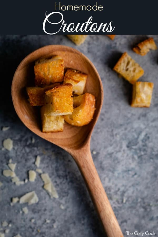These crunchy, buttery sourdough croutons are tossed in Olive Oil and sprinkled with freshly grated Parmesan cheese. They're so easy to make at home and can be ready in just 15 minutes!