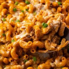 This cheeseburger casserole is an easy weeknight pasta bake filled with all the cheeseburger essentials: seasoned beef, onion, tomato, and lots of melty cheese!