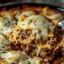 This casserole features layers of cheesy ravioli, a creamy ricotta mixture, and a hearty meat sauce, all baked to golden, bubbly perfection. It’s indulgent, comforting, and sure to please the whole family!