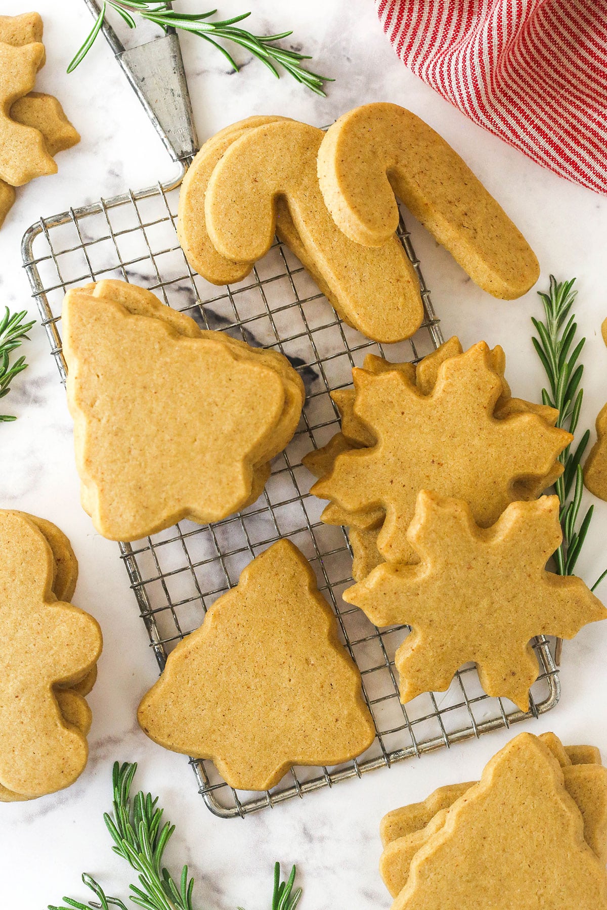 Refrigerate the cookie dough for at least an hour, or up to 2 days. You could also do this a day before you cut out your cookies and let it refrigerate overnight. If you have a container large enough to hold the rolled-out dough, you can store it in that. Otherwise, the cookie dough should be fine between the parchment paper. You could also just roll it into a ball to refrigerate, but the brown butter cookie dough gets quite firm so you’ll need to add time for letting it come to room temperature before you can roll it out.