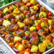 This Hawaiian Chicken Sheet Pan Meal is a colorful and flavorful dish that's easy to make and perfect for a quick weeknight dinner. Tender chicken, sweet pineapple, and savory bell peppers are coated in a tangy Hawaiian BBQ sauce for a taste of the tropics.