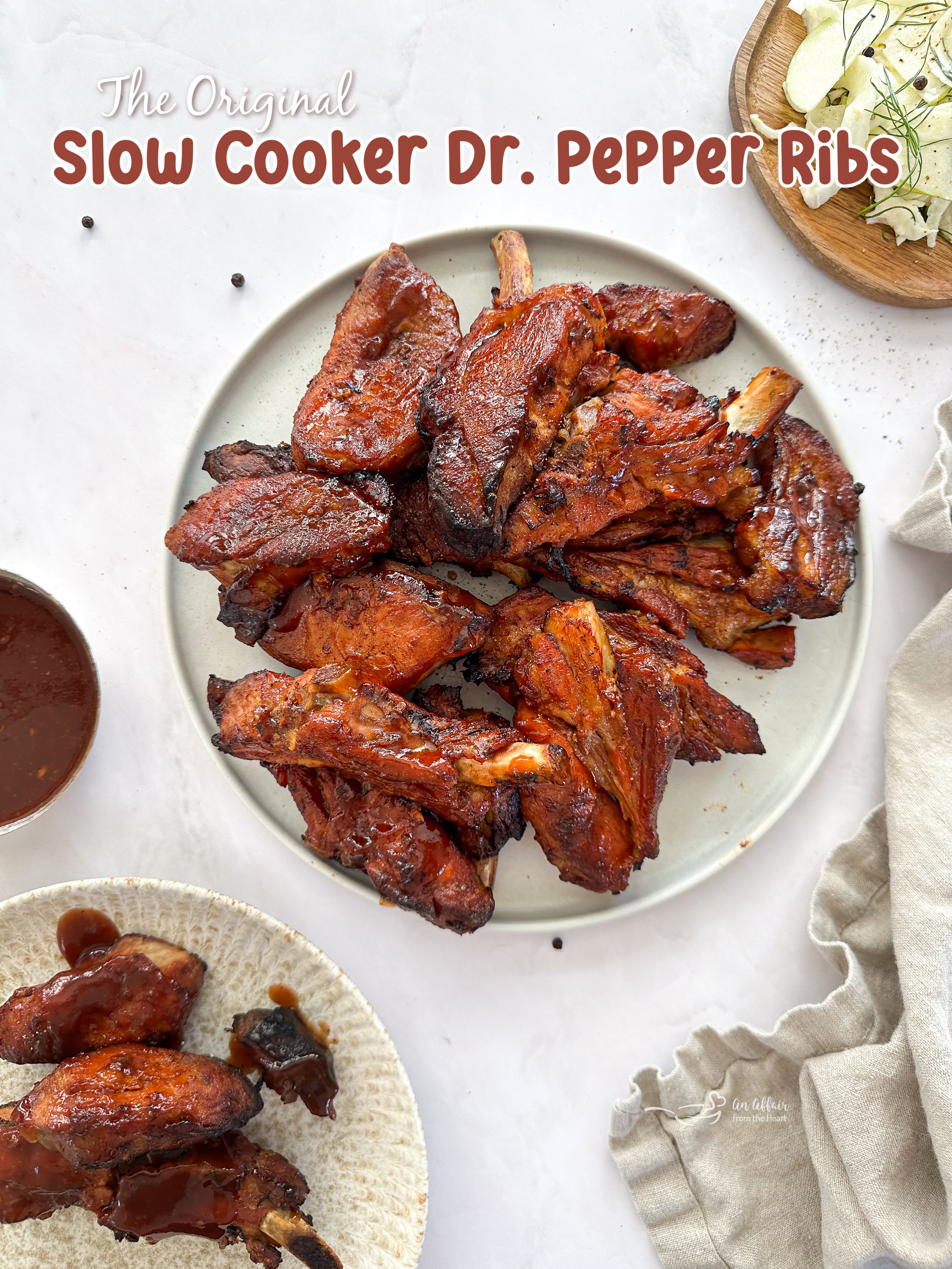 Boneless Country Style Pork Ribs, slow cooked in Dr. Pepper, then baked to caramelize the Dr. Pepper BBQ sauce.