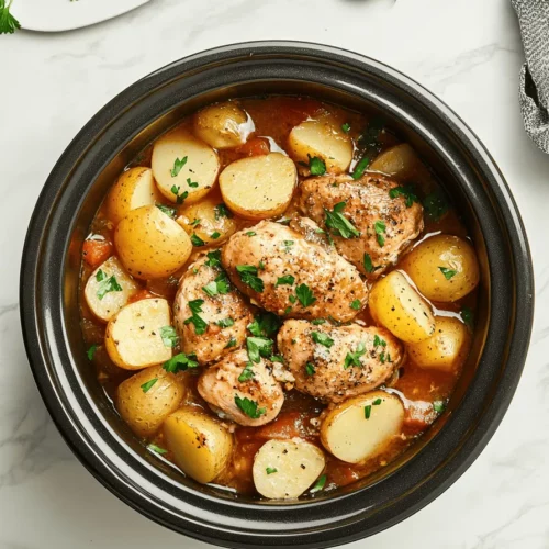 This creamy, garlicky dish features tender chicken and buttery potatoes, all cooked to perfection in a slow cooker. It’s a comforting meal that practically cooks itself!