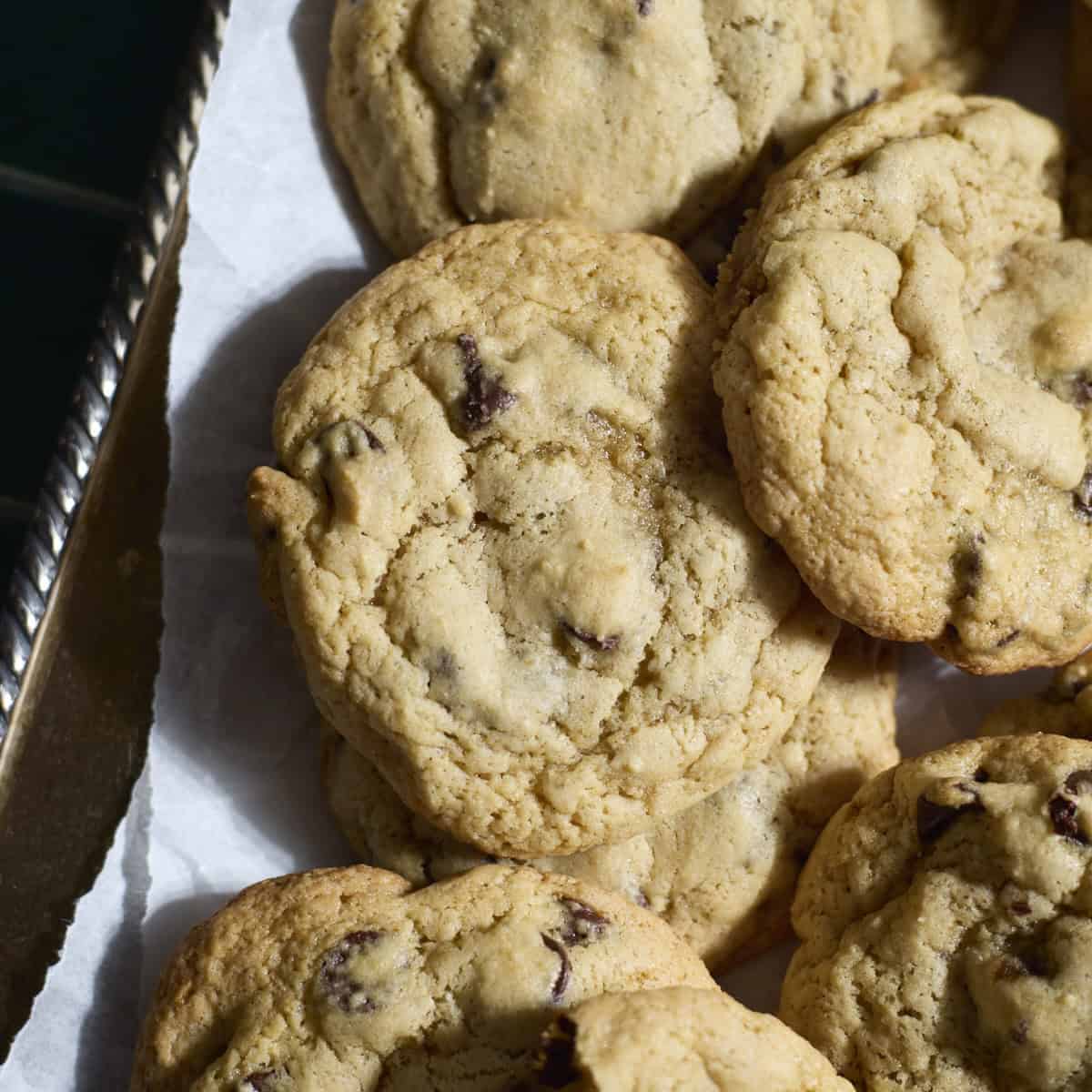 An easy recipe for Sourdough Discard Chocolate Chip Cookies with a chewy center, crisp edges, and packed with chocolate chips and sourdough tang.