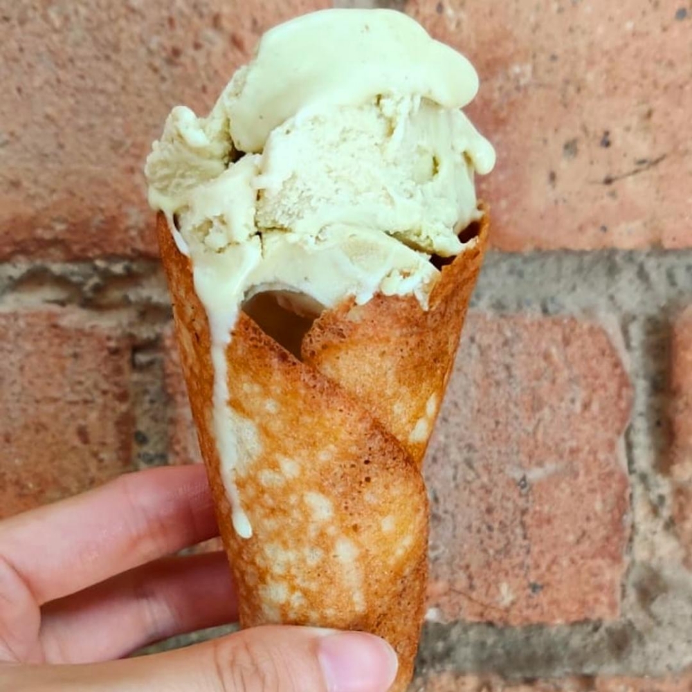 Once cooked, remove from pan and quickly wrap to form a cone shape - this must be done whilst still warm or it will crack!